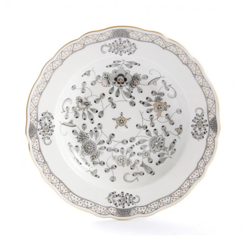 Suppenteller, Form "Neuer Ausschnitt", Indische Malerei, schwarz, Goldpunkte, Goldrand, ø 22 cm