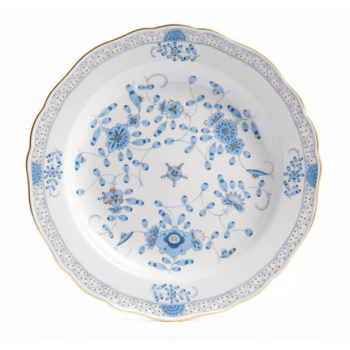 Teller, Form "Neuer Ausschnitt", Indische Malerei, hellblau, Goldpunkte, Goldrand, ø 22 cm