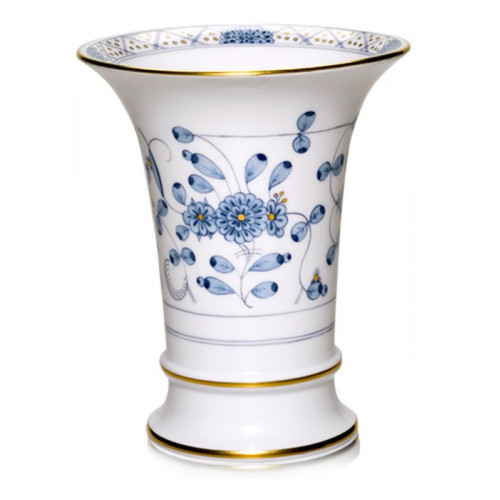 Vase, Indische Malerei, hellblau, Goldpunkte, Goldrand, H 14 cm