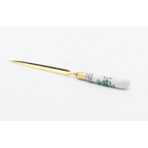 Brieföffner, Indische Malerei, grün, Goldpunkte, weißer Rand,