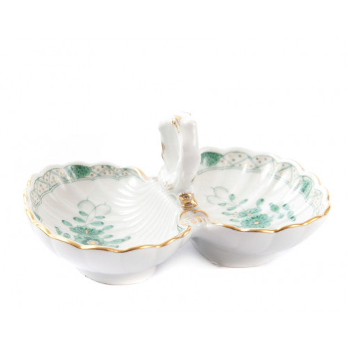 Salzgefäß, Indische Malerei, grün, Goldpunkte, Goldrand, L 11,5 cm