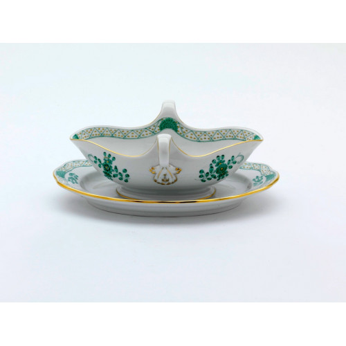 Sauciere, Form "Neuer Ausschnitt", Indische Malerei, grün, Goldpunkte, Goldrand, V 0,25 l