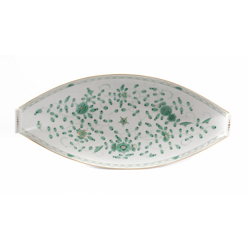 Beilageschale oval, Indische Malerei, grün, Goldpunkte, Goldrand, 40 cm