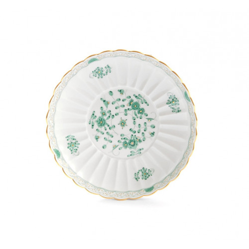 Beilageschale rund,gemuschelt, Form "Neuer Ausschnitt", Indische Malerei, grün, Goldpunkte, Goldrand, ø 16,5 cm
