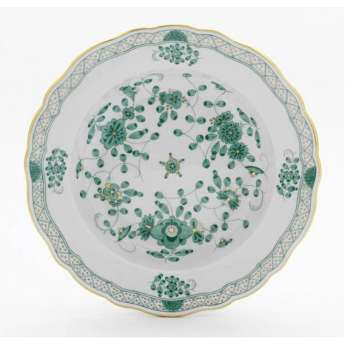 Suppenteller, Form "Neuer Ausschnitt", Indische Malerei, grün, Goldpunkte, Goldrand, ø 24 cm