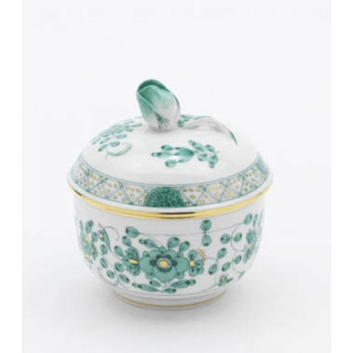 Zuckerdose, Indische Malerei, grün, Goldpunkte, Goldrand, ø 7,5 cm