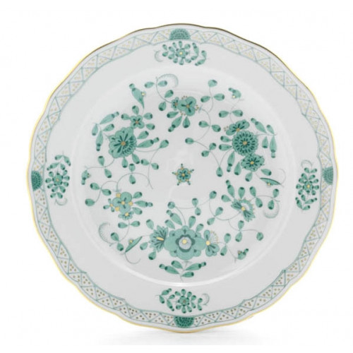 Teller m.H., Form "Neuer Ausschnitt", Indische Malerei, grün, Goldpunkte, Goldrand, ø 25 cm
