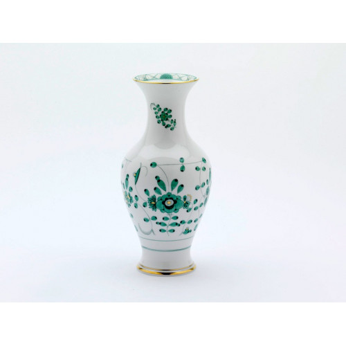 Vase, Indische Malerei, grün, Goldpunkte, Goldrand, H 24 cm