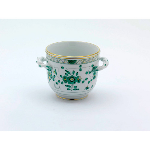 Blumentopf, Indische Malerei, grün, Goldpunkte, Goldrand, H 11 cm