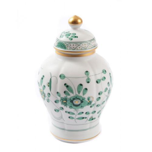 Vase, Indische Malerei, grün, Goldpunkte, Goldrand, H 14,5 cm