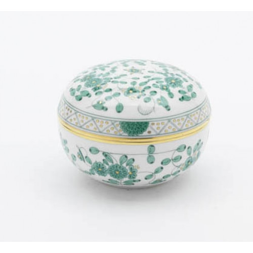 Dose, Indische Malerei, grün, Goldpunkte, Goldrand, ø 9 cm