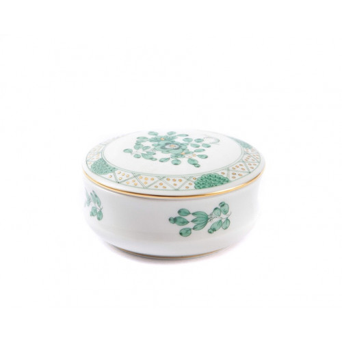 Dose, Indische Malerei, grün, Goldpunkte, Goldrand, ø 7 cm
