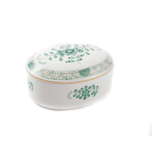 Dose, Indische Malerei, grün, Goldpunkte, Goldrand, 8x6 cm