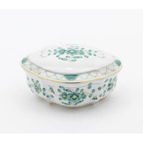 Dose, Indische Malerei, grün, Goldpunkte, Goldrand, L 10 cm