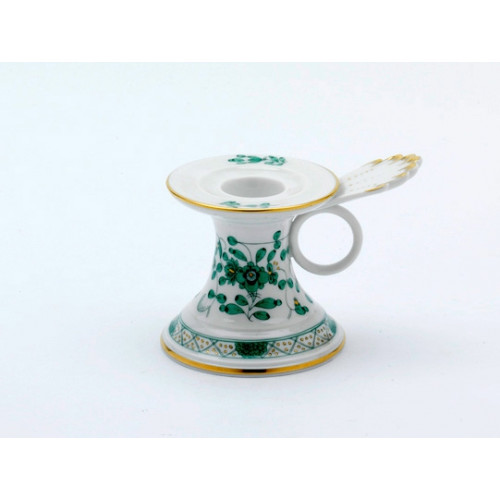 Leuchter, Indische Malerei, grün, Goldpunkte, Goldrand, H 7 cm