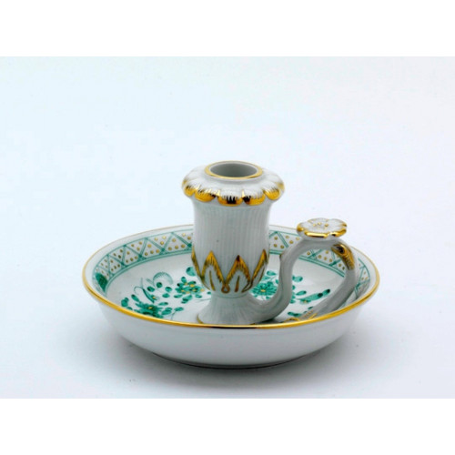 Leuchter, Indische Malerei, grün, Goldpunkte, Goldrand, H 7 cm