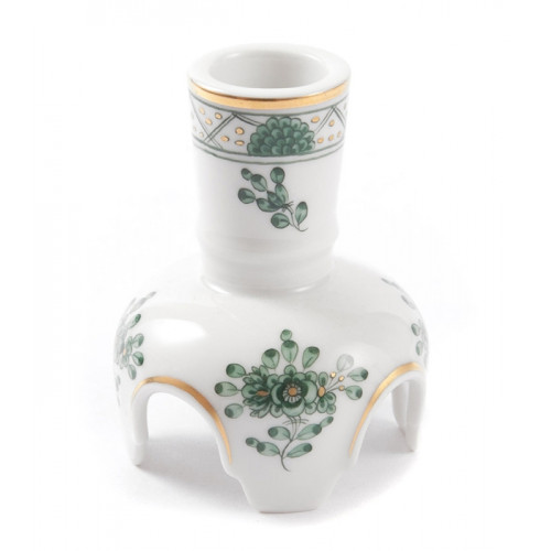 Leuchter, Indische Malerei, grün, Goldpunkte, Goldrand, H 7 cm