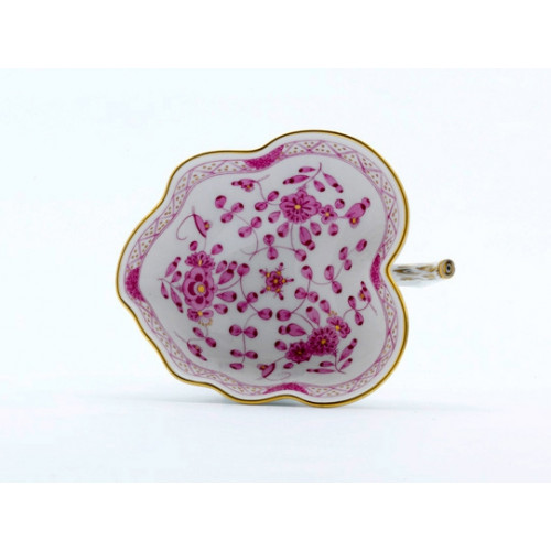 Salzgefäß, Form "Neuer Ausschnitt", Indische Malerei, purpur, Goldpunkte, Goldrand, L 10 cm