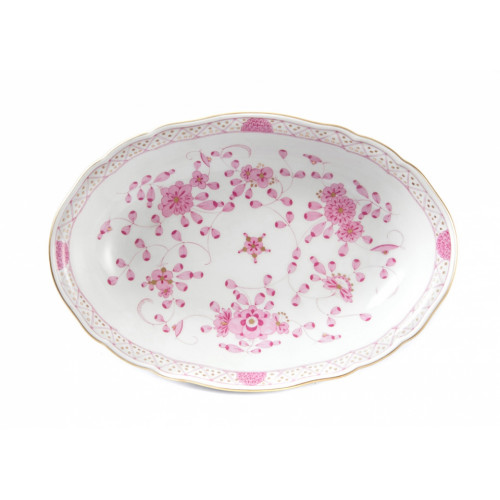 Beilageschale oval, Form "Neuer Ausschnitt", Indische Malerei, purpur, Goldpunkte, Goldrand, L 25 cm
