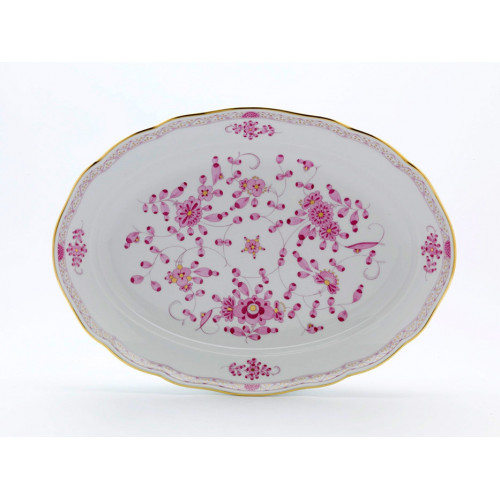 Platte, oval, Form "Neuer Ausschnitt", Indische Malerei, purpur, Goldpunkte, Goldrand, L 35 cm