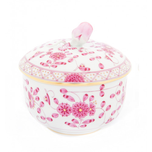 Zuckerdose, Form "Neuer Ausschnitt", Indische Malerei, purpur, Goldpunkte, Goldrand, ø 10 cm