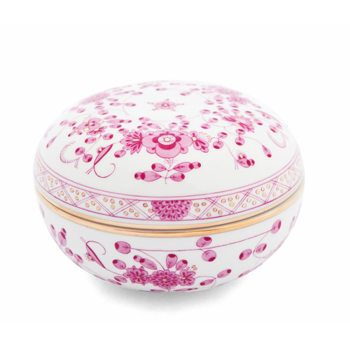 Dose, Form "Neuer Ausschnitt", Indische Malerei, purpur, Goldpunkte, Goldrand, ø 13 cm