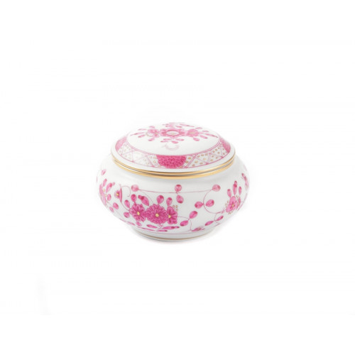 Dose, Form "Neuer Ausschnitt", Indische Malerei, purpur, Goldpunkte, Goldrand, 8 cm