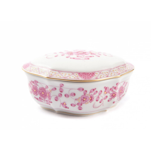 Dose, Form "Neuer Ausschnitt", Indische Malerei, purpur, Goldpunkte, Goldrand, L 9,5 cm