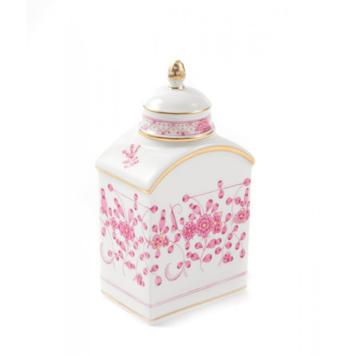 Teedose, Form "Neuer Ausschnitt", Indische Malerei, purpur, Goldpunkte, Goldrand, H 14 cm