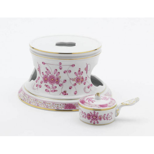 Stövchen, Form "Neuer Ausschnitt", Indische Malerei, purpur, Goldpunkte, Goldrand, ø 16 cm
