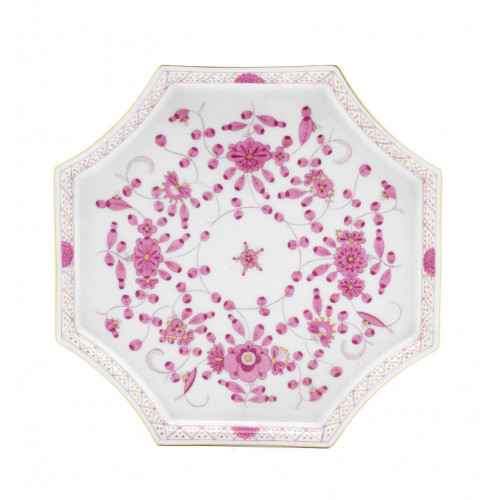 Platte,achteckig, Indische Malerei, purpur, Goldpunkte, Goldrand, L 21 cm
