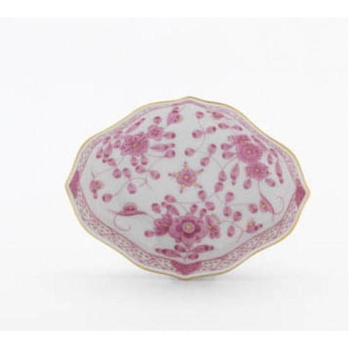 Schälchen, Form "Neuer Ausschnitt", Indische Malerei, purpur, Goldpunkte, Goldrand, L 10 cm