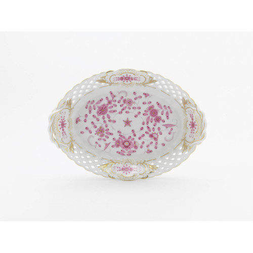 Korb, durchbr. mit 2 Henkel, Indische Malerei, purpur, Goldpunkte, Goldrand und Goldstaffage, L 25 cm