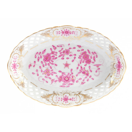 Schale, durchbr. oval, Indische Malerei,purpur,Goldpunkte,Schilderornamente goldstaff.,Goldr., L 25 cm