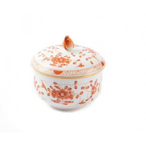 Zuckerdose, Indische Malerei, rot, Goldpunkte, Goldrand, ø 10 cm