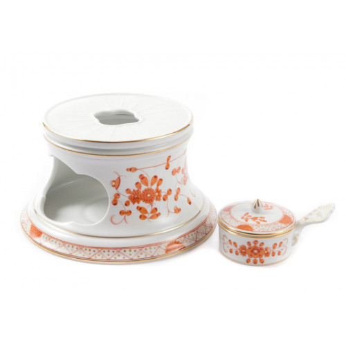 Stövchen, Indische Malerei, rot, Goldpunkte, Goldrand, ø 16 cm