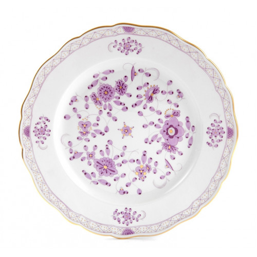 Speiseteller, Form "Neuer Ausschnitt", Indische Malerei, lila, Goldpunkte, Goldrand, ø 28 cm