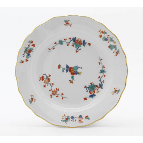Teller, Form "Neuer Ausschnitt", Chinesische Blumenmalerei 7, bunt mit Kupferfarben, Goldrand, ø 20 cm
