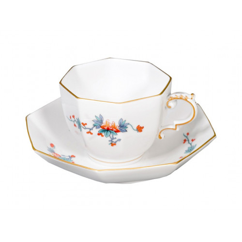 Tasse m.U. achteckig, Chinesische Blumenmalerei 7, bunt mit Kupferfarben, Goldrand, V 0,15 l