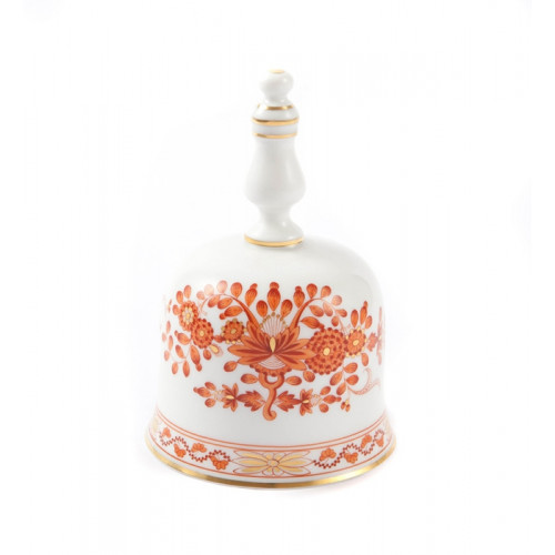 Tischglocke, Indische Korallenrot-Malerei, rot, Goldpunkte, Goldrand, H 11 cm