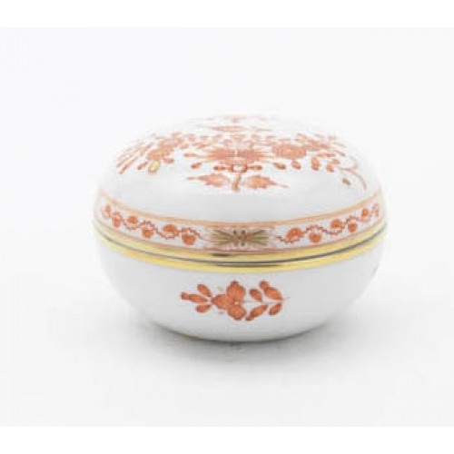 Dose, Indische Korallenrot-Malerei, rot, Goldpunkte, Goldrand, ø 7,5 cm