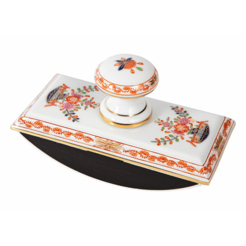 Löscher, Tischchenmuster, bunt, goldschattiert, Goldrand, 11x6 cm