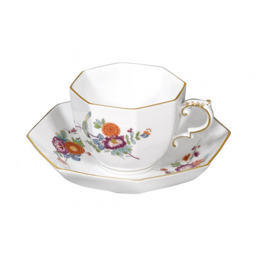 Tasse m.U. achteckig, Indische Vogel- und Blumenmalerei,bunt mit Kupferfarben,Goldrand, V 0,15 l