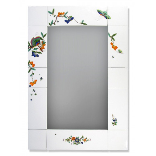 Spiegel komplett, Chinesischer Schmetterling 'Style', weißer Rand, 70x50 cm
