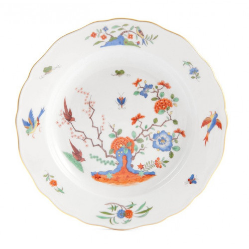 Teller, Indische Fels-,Blumen-und Vogelmalerei,bunt mit Kupferfarben,Goldrand, ø 20 cm