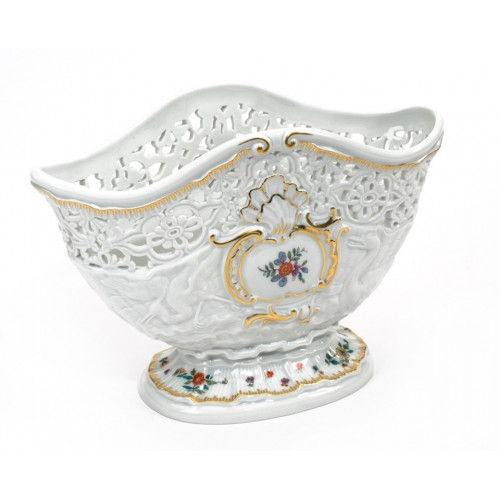 Serviettenhalter, Indische Blumenzweige, gestreute Blümchen, Goldkante, Goldrand, L 24 cm