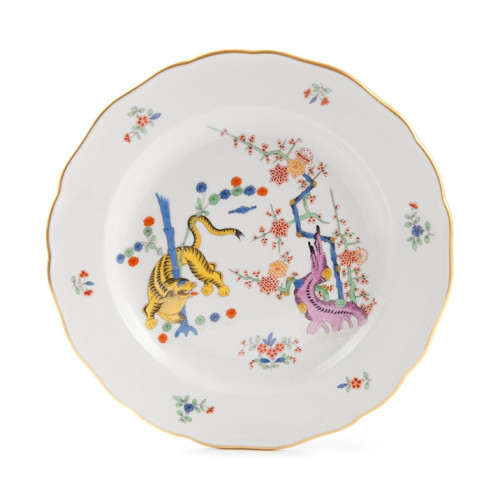Teller m.H., Alter reicher gelber Löwe, bunt mit Kupferfarben, Goldrand, ø 25 cm