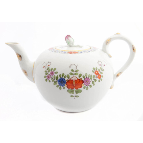 Teekanne, Indische Blumenmalerei, zweiteilig, bunt mit Kupferfarben, Goldrand, V 1,00 l