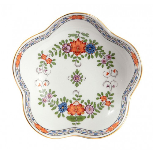 Schälchen, Indische Blumenmalerei, zweiteilig, bunt mit Kupferfarben, Goldrand, ø 14 cm
