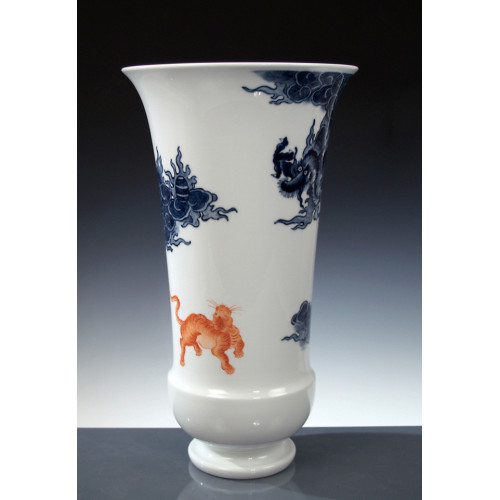 Vase, Roter Tiger, Wolken u. Drachen schieferblau, Kanne 55654 m.Tiger gelb, H 37,5 cm